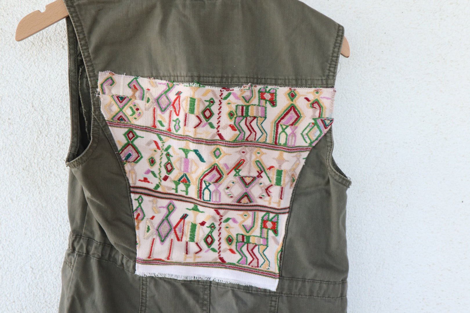This utility vest features a vintage Huipil from Guatemala, expertly handwoven and sustainably re-furbished onto the back yoke of the garment. Amp up your style with a one-of-a-kind look that sets you apart from the crowd.