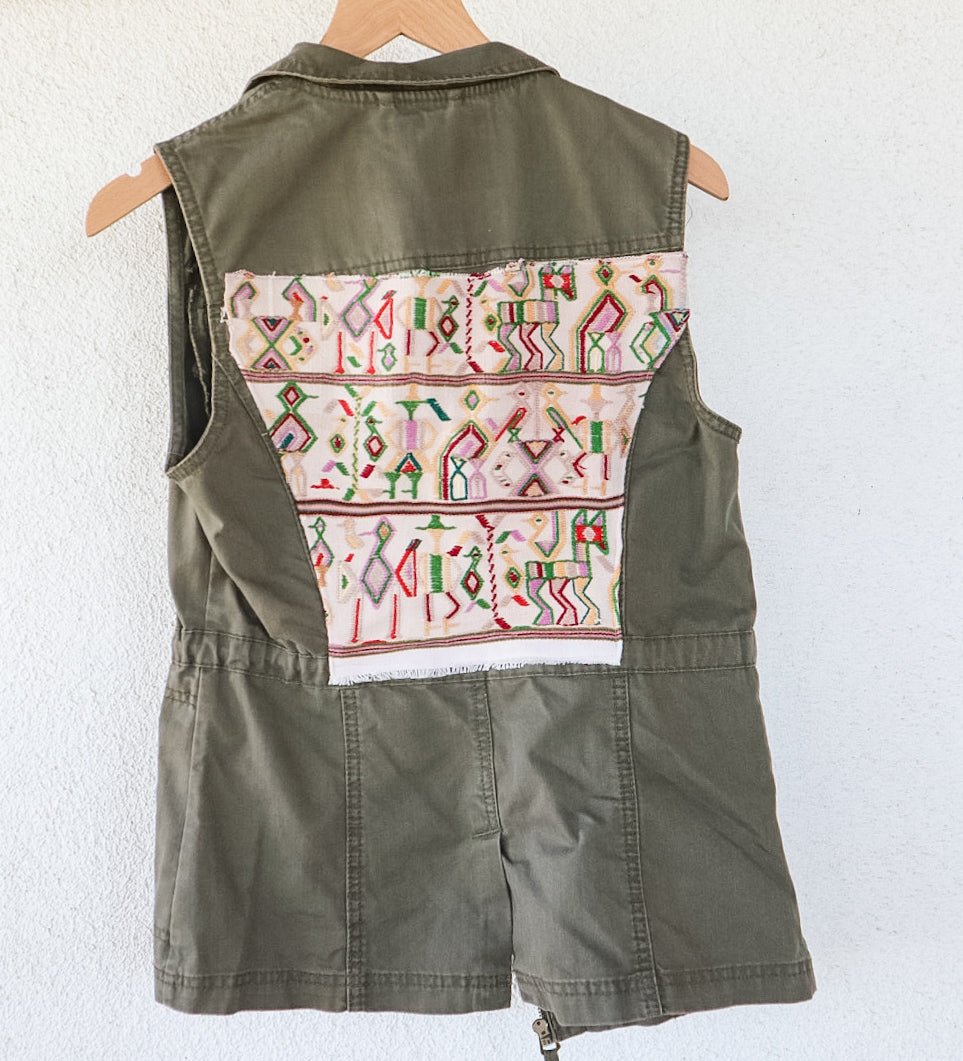 Denim Utility Vest with Vintage Huipil