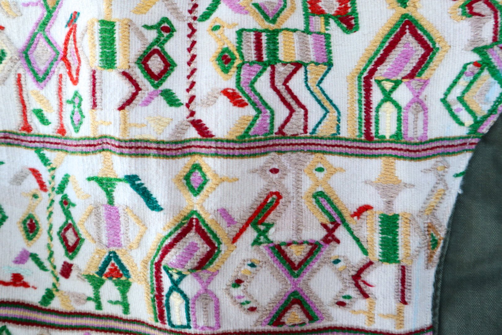 - Vintage Guatemalan textile on the back from Nebaj, El Quiche, Guatemala