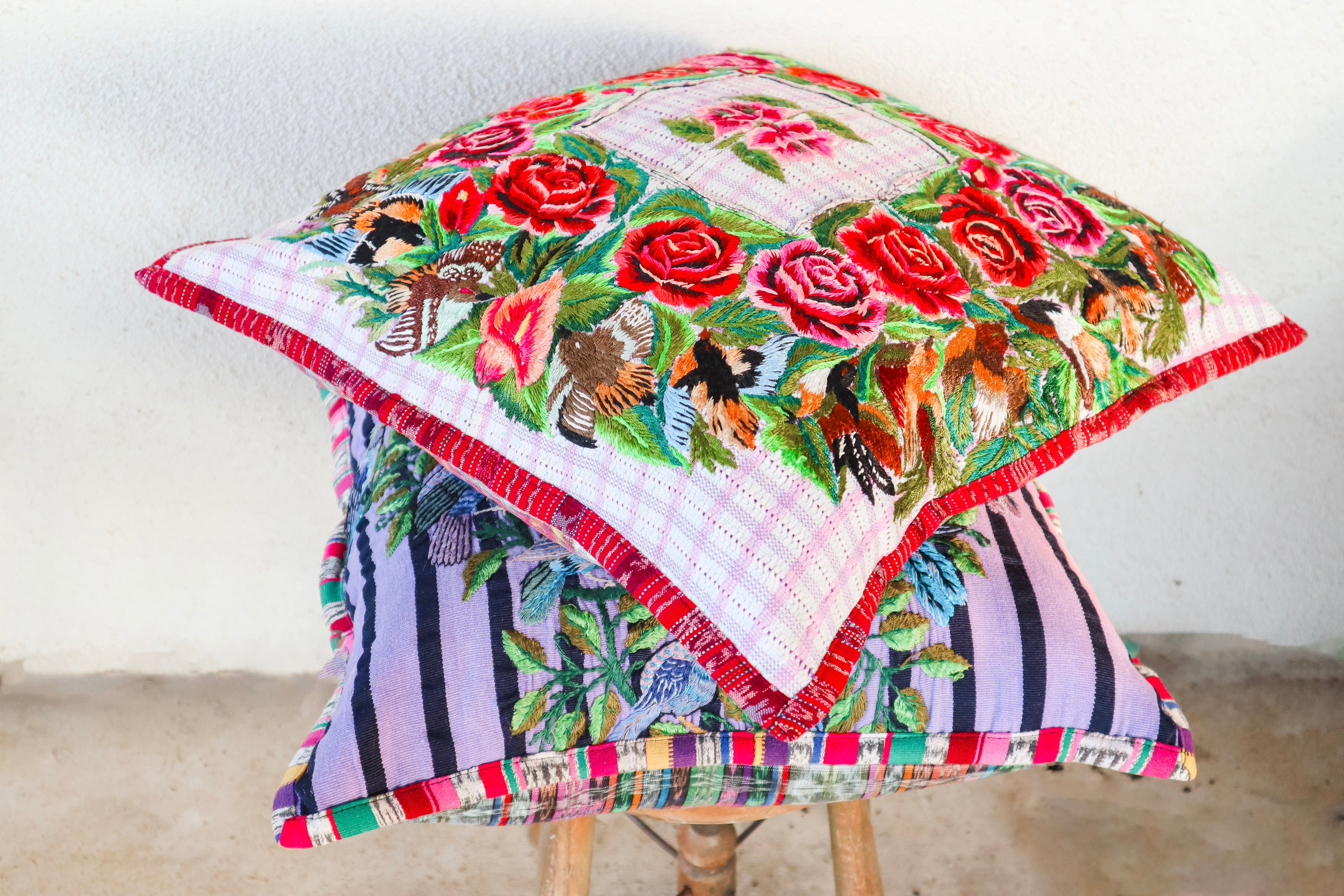 This particular handwoven textile is from the highlands of Chichicastenango, Guatemala, where master weavers express their identity and community through intricate handwoven bird designs. No two pillow covers are alike—each is a unique reflection of the artisan’s artistry and tradition.