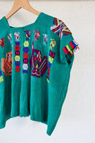 Experience the rare beauty of our authentic Mayan Huipil tops from Chajul, Quiché, Guatemala. Handwoven on a traditional back-strap loom with 100% cotton, this vintage piece showcases a Dark Teal base, free from dyes. Directly sourced from skilled weavers in the remote village of Chajul, each top embodies heritage and artistry.