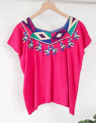 This top is more popular with the younger Mayan generation because it is light and affordable - but be ware, the neckline is not handwoven; it is a machine applique. Nonetheless, this top is beautiful and you can wear it with denim or linen pants for a casual picnic day in the sun, or spice it up with a skirt and boots for a fun night out on the town! Either way you wear it, heads will turn towards your boho-stylish self.