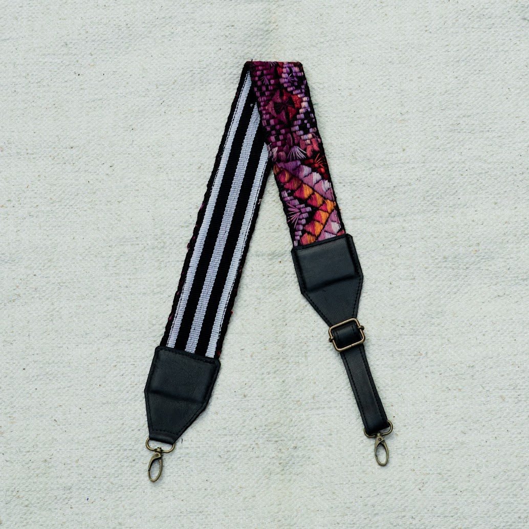 This strap was handcrafted using a pre-loved, one-of-a-kind, handwoven 'Faja' (traditional Mayan belt), then paired with full-grain leather and high-quality, ADJUSTABLE metal fastenings for easy attachment.