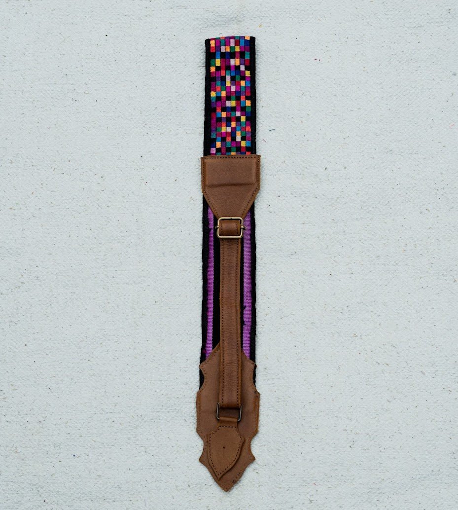 This stunning guitar strap was handcrafted using a one-of-a-kind, handwoven 'Faja' (traditional Mayan belt). We know that the guitar strap is a crucial music accessory for every guitarist. This is why our one of a kind design is made to represent the uniqueness of the owner and create meaningful change in the families that made it.