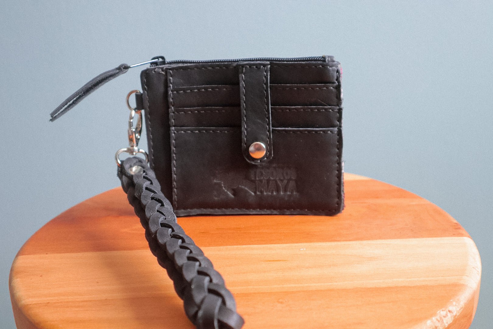 Handmade Huipil Leather Wallet Wristlet - Guatemalan Fair Trade Accessory