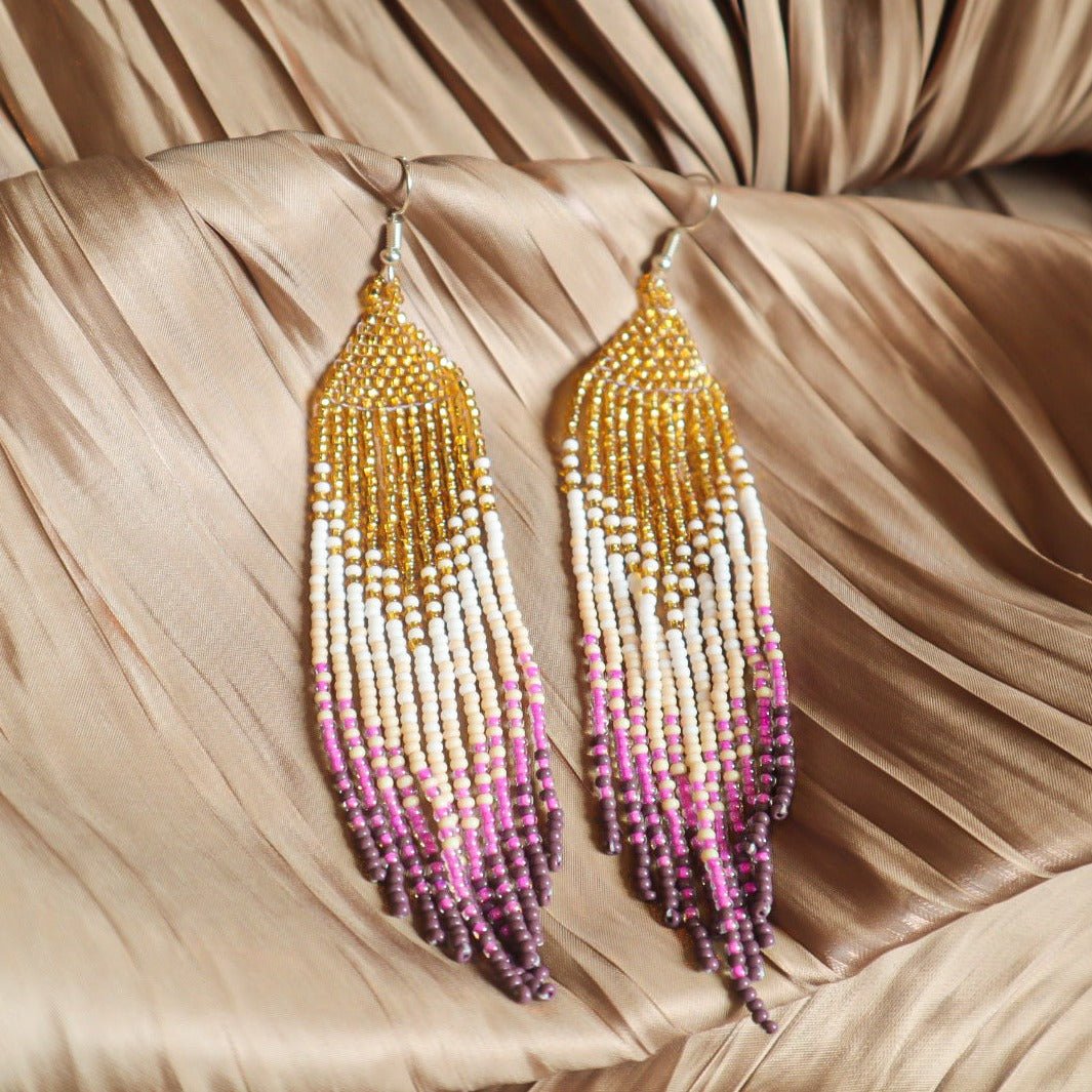 Elevate your style with our handcrafted Mayan Beaded Earrings. These vibrant chandelier earrings feature sparkling beaded strands that dance with every step. Perfect for fall and holiday festivities!