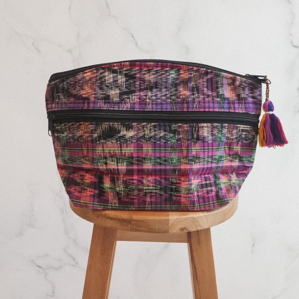 Travel in fashion with our one-of-a-kind Waterproof Cosmetic Bag featuring stunning up-cycled vintage Mayan top (huipil). Stay stylish while keeping your essentials safe with its waterproof lining. Ready to jet-set in style and ethically?