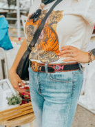 A perfect pairing for your jeans, skirts, or dresses, our Handwoven Belt adds eye-catching pattern to your look - no matter if you're getting dressed up or keeping it chill. With leather stitching and metal hardware, this belt checks all the must-haves.