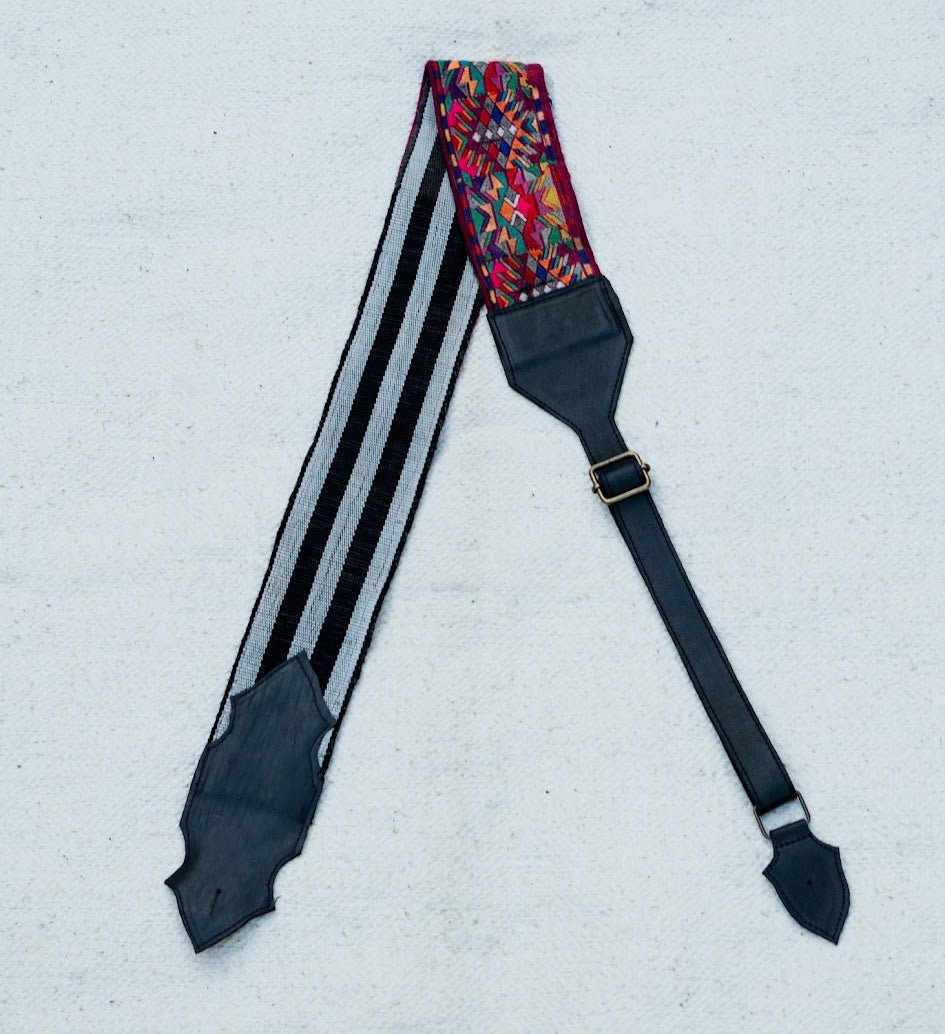 This stunning guitar strap was handcrafted using a one-of-a-kind, handwoven 'Faja' (traditional Mayan belt). We know that the guitar strap is a crucial music accessory for every guitarist. This is why our one of a kind design is made to represent the uniqueness of the owner and create meaningful change in the families that made it.