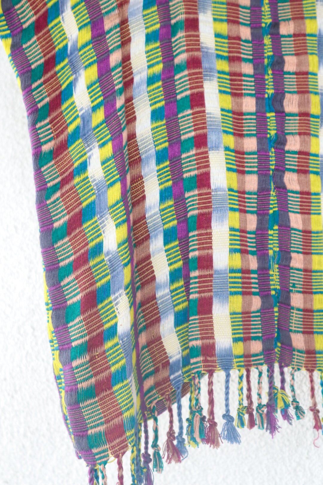 Pronounced HA-spay, jaspe is the Guatemalan form of Ikat, an ancient and admired art form found in a number of cultures. Think of it as tie-dye done to the yarn before it's woven, so the designs created by the tied areas show up in the finished cloth. This process is extremely complex and time-consuming.
