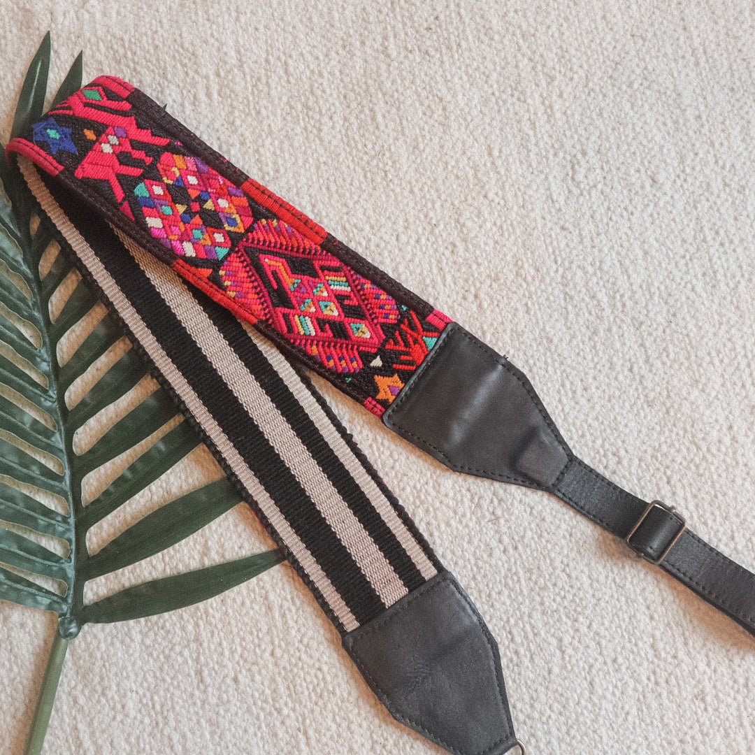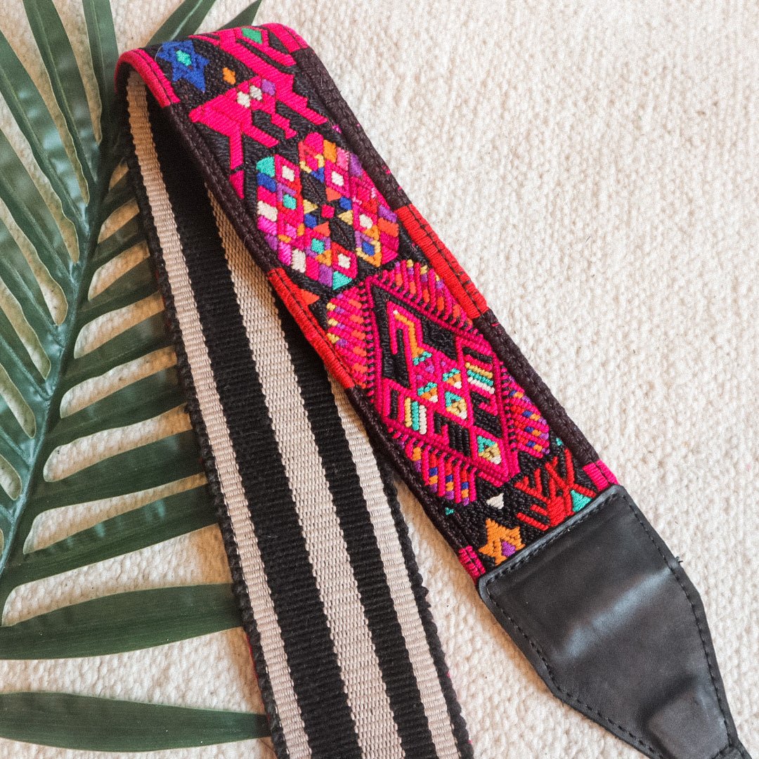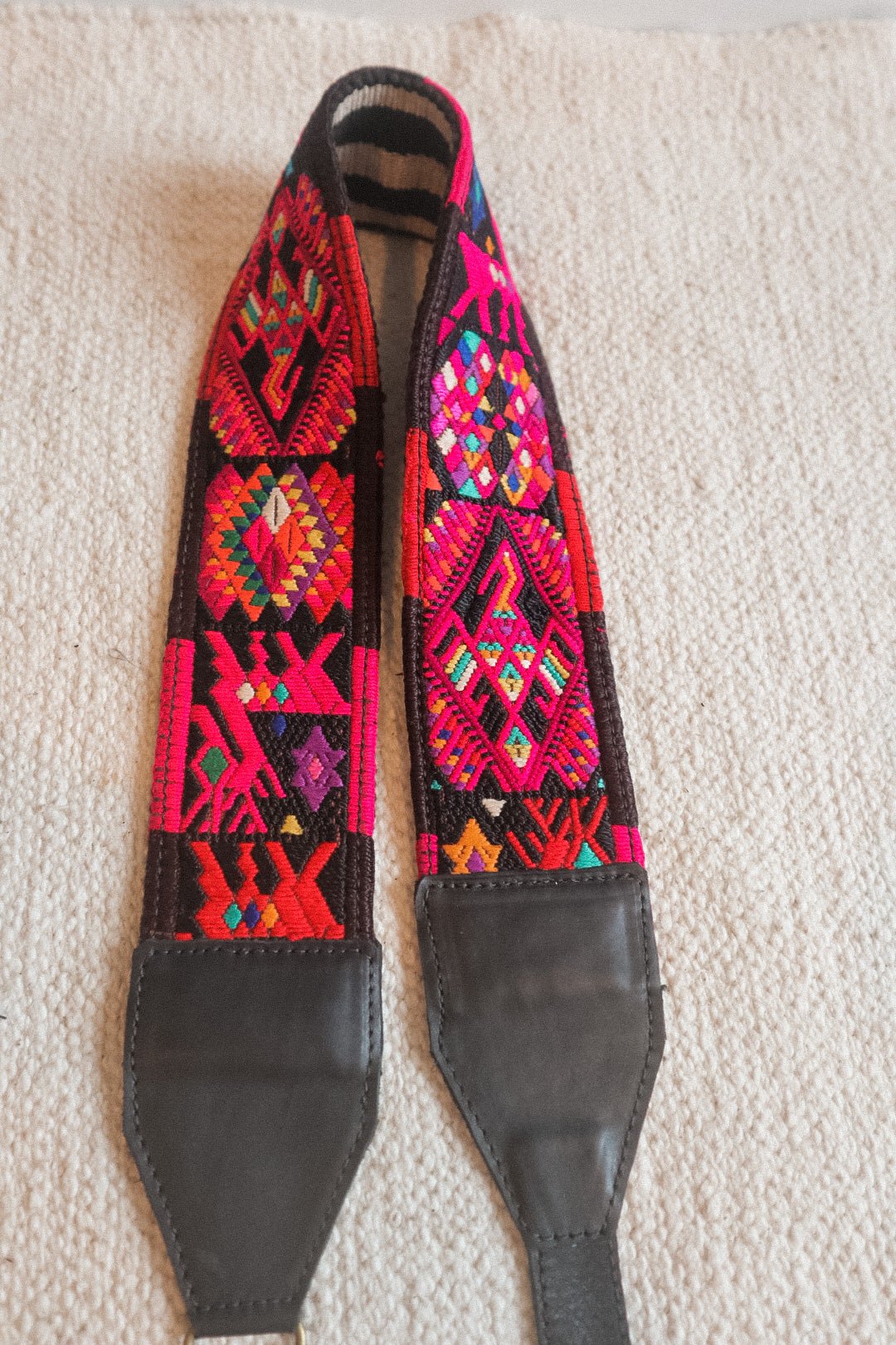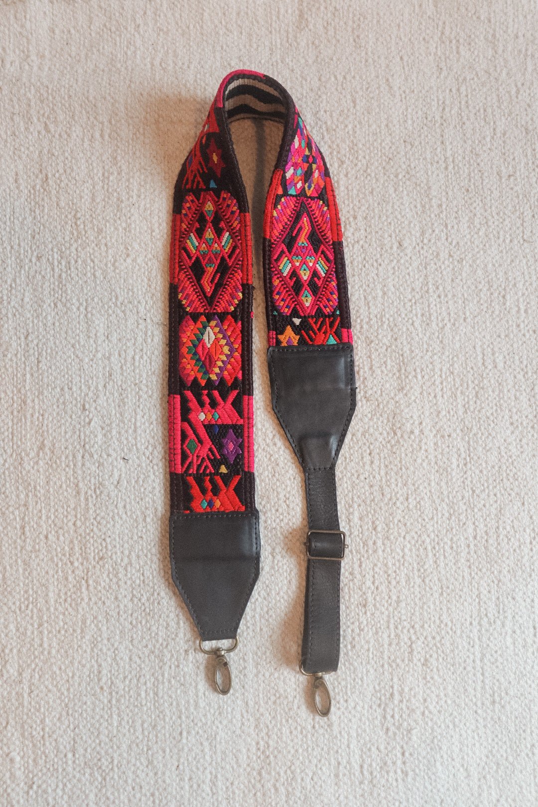 This strap was handcrafted using a pre-loved, one-of-a-kind, handwoven 'Faja' (traditional Mayan belt), then paired with full-grain leather and high-quality, ADJUSTABLE metal fastenings for easy attachment.