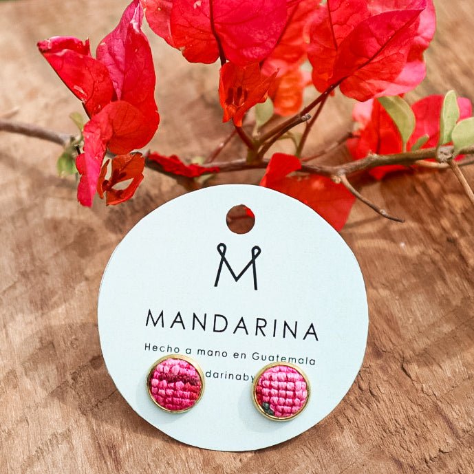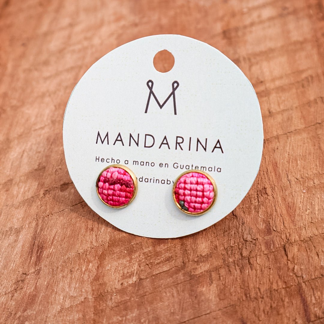 Discover our partnership with Mandarina by Dre, a talented Guatemalan artisan who transforms fabric remnants from our handbag production. Each stud is meticulously handcrafted using vintage textiles of Mayan tops (Huipils) or skirts (Cortes) worn by women in the area that are now no longer wearable.