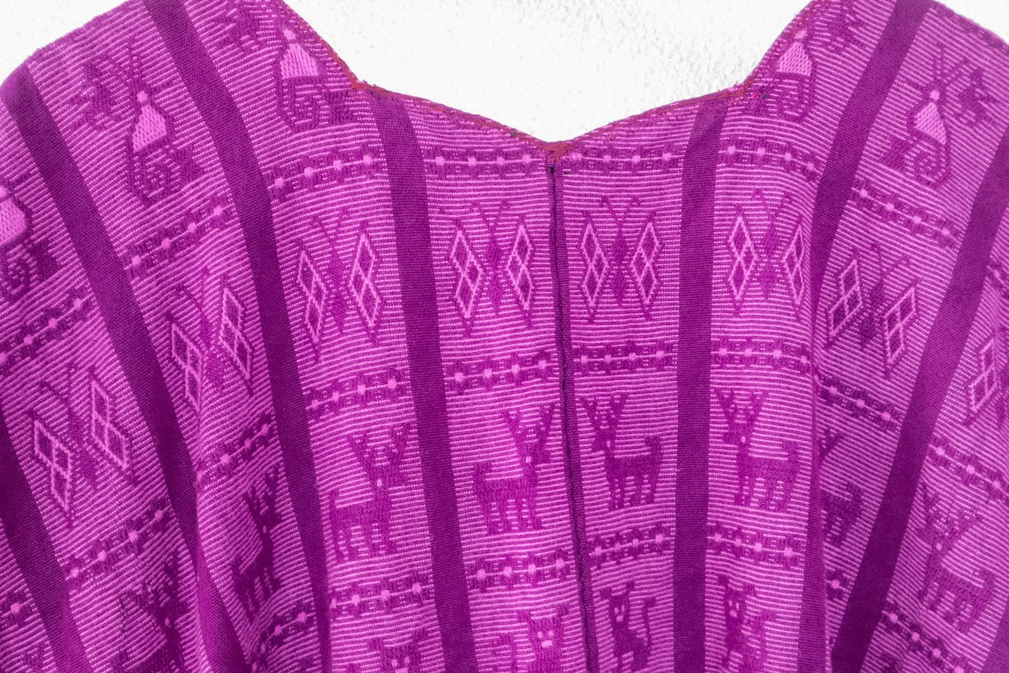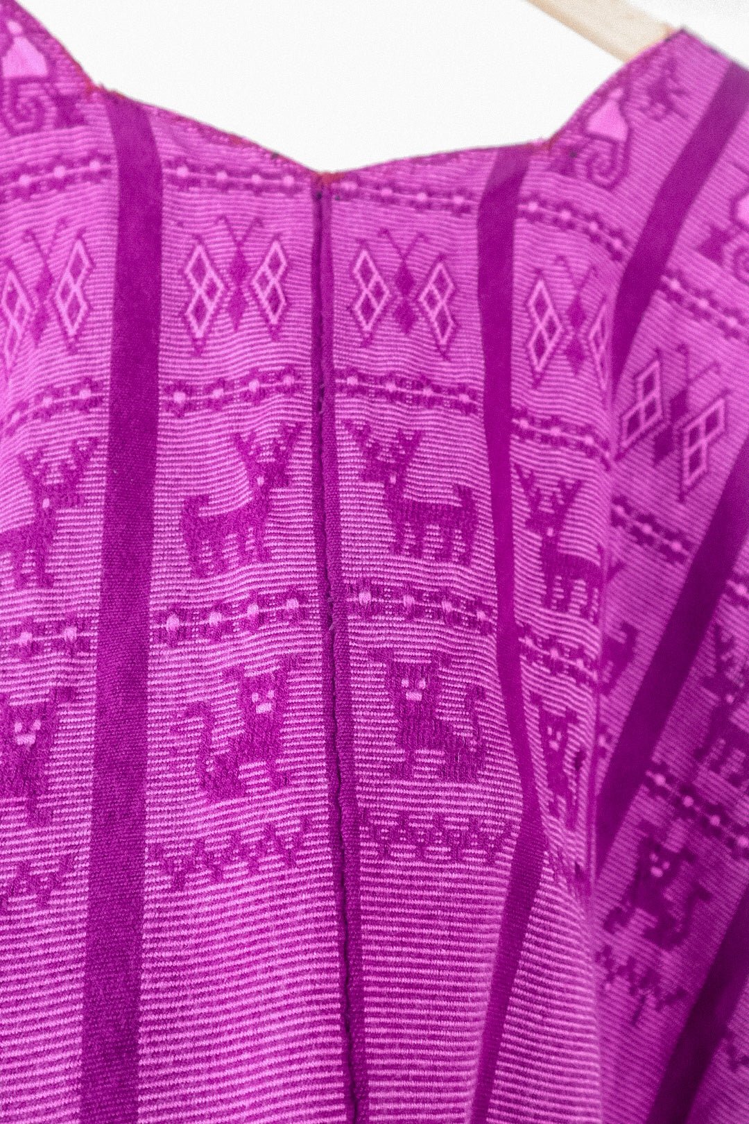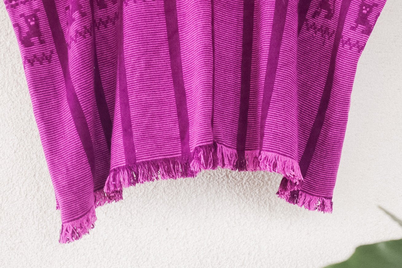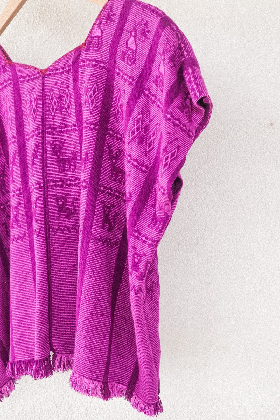 Vintage and hand-woven on a back-strap loom with 100% cotton, in a deep plum base, adorned by adorable purple butterflies, dogs and deer. Wear it with denim or linen pants for a casual picnic day in the sun, or spice it up with a skirt and boots for a fun night out on the town! Either way you wear it, heads will turn towards your boho-stylish self.